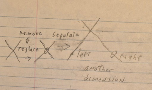 These two items could be multiple. This is how we can hide! In order to do this we would have to take out the usual concept of a point as being the only entity with no extent and replace it with these new conceptions as other entities which can have no extent. There are these little entities that don’t combine to form a point. This is because a point is already there as the only idea of no extent. We need some room!