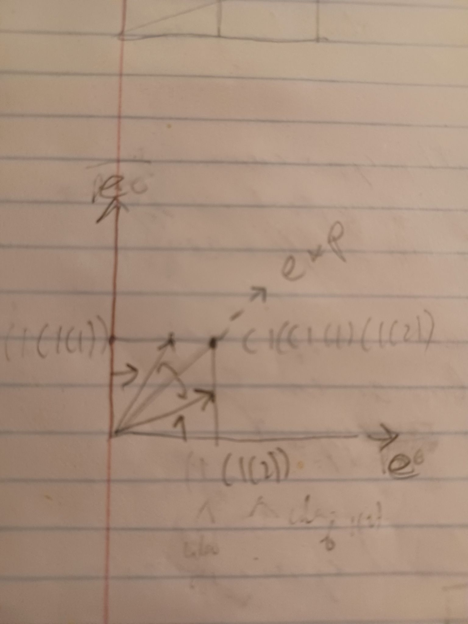e(1)*p(1) is e and p sharing a location. We can separate a copy of e(1) away, since 0-0=0. Think of a jigsaw puzzle of a landscape being taken apart. e(1)*p(1) =e(1)oe(1)*p(1). Let e(0) be a bridge into the other dimension. Then e(0)(e(1))oe(1)*p(1)=(e(0)*e(1))o*p(1) and p(1) falls away leaving e(0)(e(1)). Then we have e(2)(e(1)). There might also be an extent of p, along with the e, In which case we can have e(1)*p(2).
