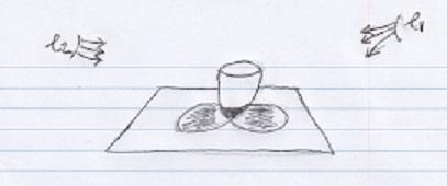 Consider a teacup placed on a table with two lights from above. One from the left and one from the right. See below:
