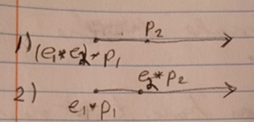 To be complete…=p(1)op(1)op(1)op(1) =p(1)op(1)op(1)=p(1)op(1)=p(1), and also… e(1)*e(2)*e(3)*e(4) is not equal to e(1)*e(2)*e(3) is not equal to e(1)*e(2) is not equal to a single e .Also e(1)*e(2) is possible.. That is, e or multiple e’s can travel along an extent of e’s and p’s.